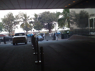 8:00a - Outside the hotel at the valet stand I ask for a cab to the office. One pulls up and the driver has a few words with the hotel valet. The driver demands 100 Rs. and the valet looks at me sheepishly. I've been trained to react with a face full of shock and retort that I shall not pay anything more than 50 Rs. In my mind this all seems silly because remember, we're talking $1 versus $2, but to succumb to the 100% markup screams "tourist" and "Westerner who flashes money around like it's no big deal." And regardless of where you are, that latter descriptor is an obnoxious trait to own. So I wait for the next cab.