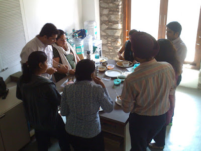 Once you’ve got your lunch you meet up with the rest of your coworkers in the pantry. That’s right, no eating at your desk while doing some online shopping. And when you arrive at the table you open up your containers and offer samples to the group before tasting anything yourself. It is a giant potluck each and every day. Given this, I have tasted untold amounts of Indian dishes and haven’t had a bad bite yet. Everyone back home has asked how the food is and it is delicious. Truly. Continental food will surely taste bland after six weeks of spice and obscene amounts of butter.