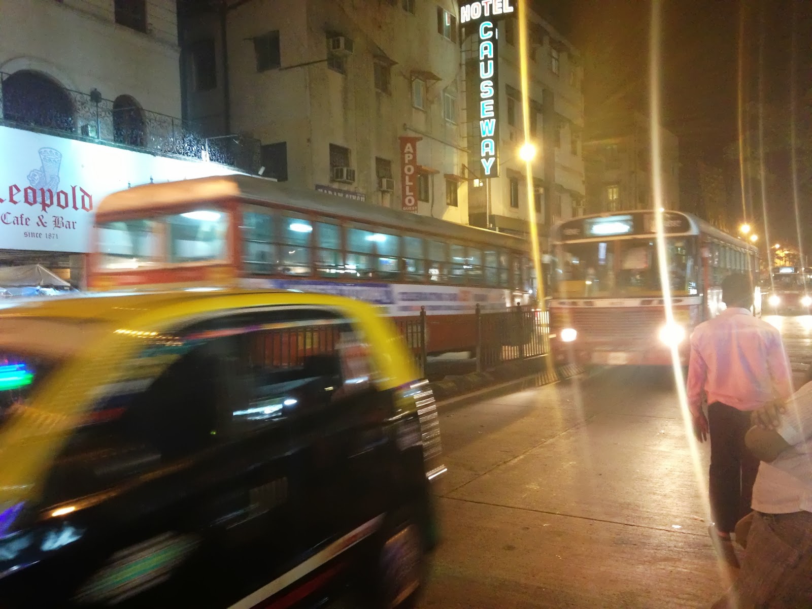 But there have been a few moments of downtime here and there, like tonight's beer and Indian pizza. I don't know what I ate and yet I can tell you it was distinctively pizza-esque Indian food! After it all, we dodged the customary onslaught of traffic on Colaba Causeway to hail a cab.