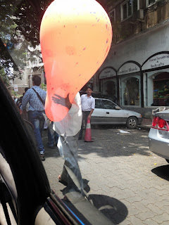 The peddlers on the street are still selling ridiculously oversized balloons. These guys can be found every day trolling around the Taj Palace Hotel and, as such, I haven't figured out their target audience. On one side you have tourists festooned with fancy cameras or shopping bags from the designer shops. On the other side you have mothers and toddlers begging those very same tourists for whatever cash is leftover. People have their hands full or their hands out but nobody has their hands on a balloon.