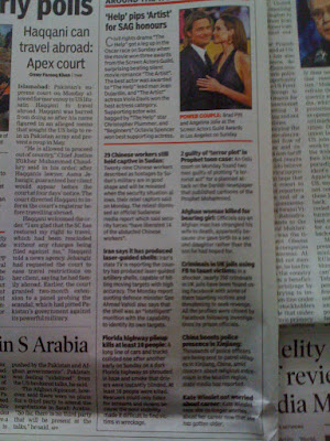 Each morning a newspaper arrives on my hotel room door all nicely wrapped up in a canvas sack that proclaims, "Good morning." Yes, indeed. I collect the Times of India (ToI ) and bring it to the breakfast table for a little light reading. No disrespect to the editor of the ToI, but this paper often conjures up thoughts of that scene from So I Married an Axe Murderer in which Mike Myers berates his mother for considering the supermarket tabloids to be of the same caliber as The Washington Post or The New York Times. She retorts that they both have “facts” in them so what's the big deal? I kind of get that vibe from the ToI. But for every bit of newspaper sensationalism there is a nugget of anthropological insight. Since we’ve already covered some of the more eye-catching headlines I’ll instead focus on the general content and format of all the news that’s kinda, sorta fit to print.