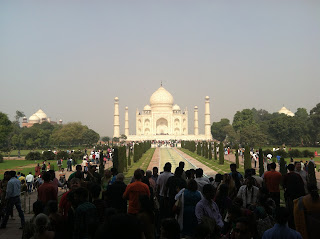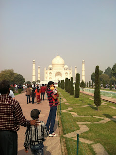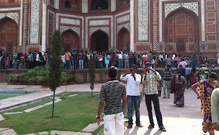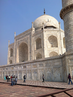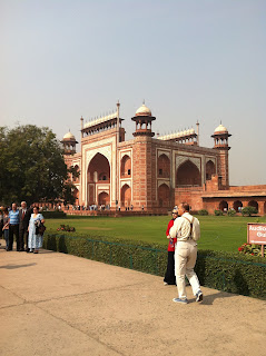 Sunday afternoon, following hours in the car and a monkey incident, we reached Agra, home of the Taj Mahal. In short, it is as magnificent as you have been led to believe. Maybe more so. I love when architecture has the power to elicit a common response and you would be hard-pressed to find someone at the Taj Mahal who didn't utter "Wow" at least once. And, while you are free to walk through the palace itself as we did, Matt and I decided it is most impressive upon first glance through the entry gate.