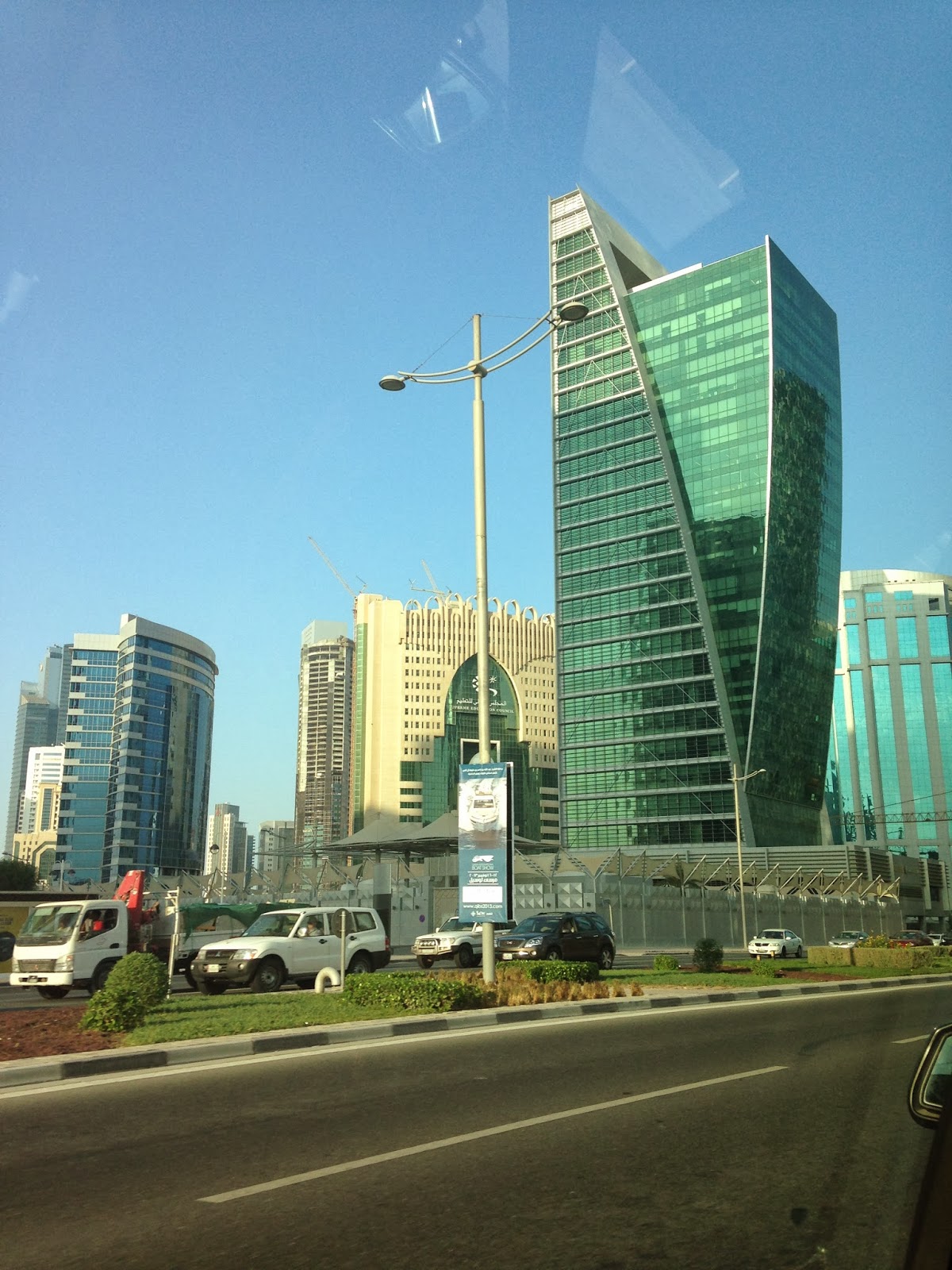 Note that all my pictures are taken from the backseat of the car. This is symptomatic of a city where few people walk and the street life subsequently resembles a Sunday morning in Buffalo, NY, at all times. In other words, Doha looked like a ghost town to my Mumbai-trained eyes. What else is different?