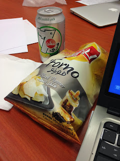 Diet 7 Up and Baked Lays (with a delicious pepper flavor). |