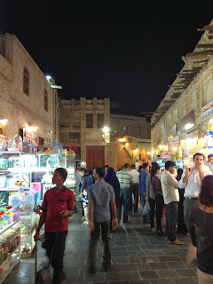 I can't comment much here but the last night we were in town we did venture out to the Souq Waqif. It's an open air market about 10 minutes from downtown and was a delightful diversion. Much like the hospital being midway between American and Indian versions, so too was the Souq when it comes to American outdoor malls and Crawford Market in Mumbai. It was busy but not completely packed with people, you can buy traditional Middle Eastern goods but without having someone shove them in your face to tempt you, and it's tidy but not hermetically sealed like most other venues in Doha.