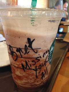Dining out of Starbucks' display case every day led to all of us overdosing on spicy Santa Fe chicken wraps, spinach quiches, and ham and cheese croissants. As proof of our dining frequency, the barista wrote us goodbye messages on our cups. Someone left an admirer behind in Doha...